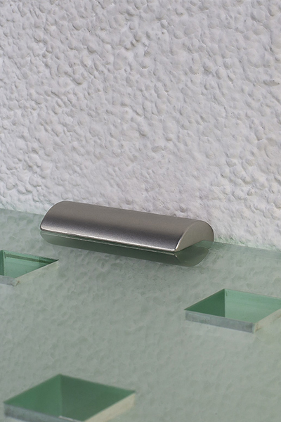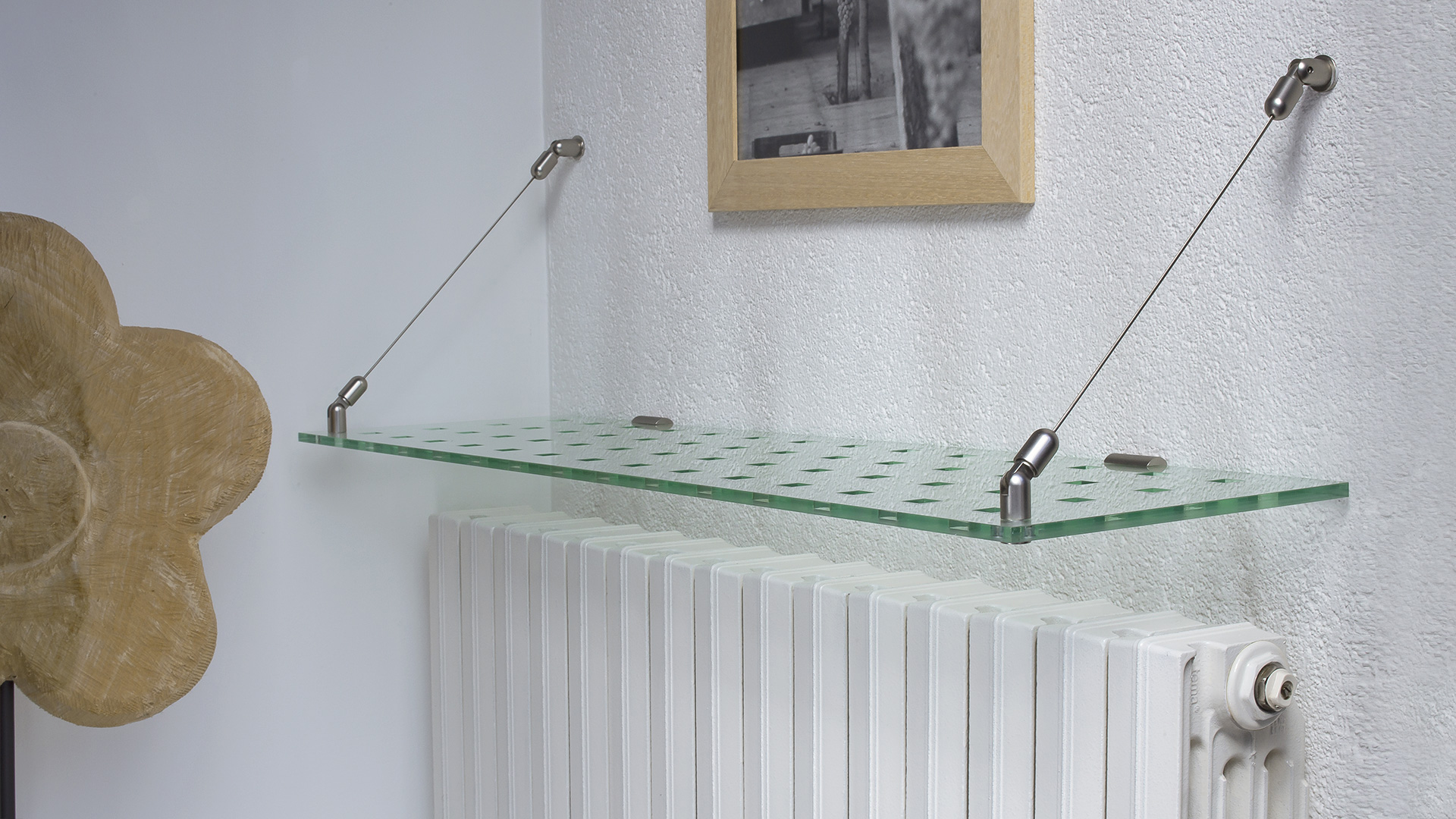 Sistema per il fissaggio a parete di ripiani piccoli e leggeri, con supporto anteriore di sicurezza